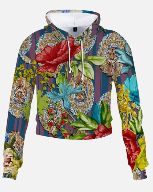 Jacki Easlick Tiger Flower Cropped Sweatshirt