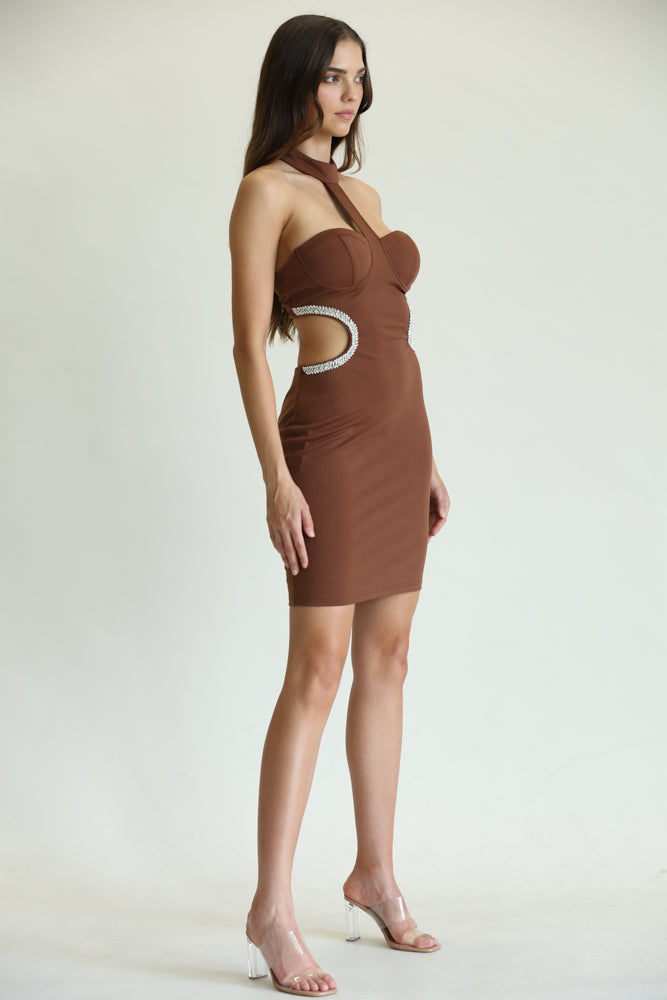 – CUTOUT WAIST WITH CHEVRON RHINESTONE TRIM