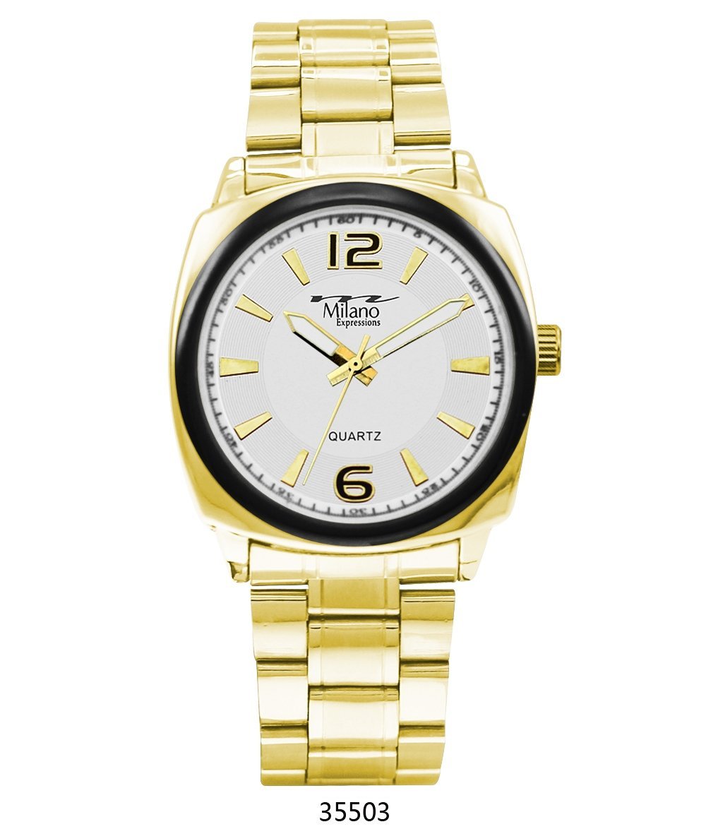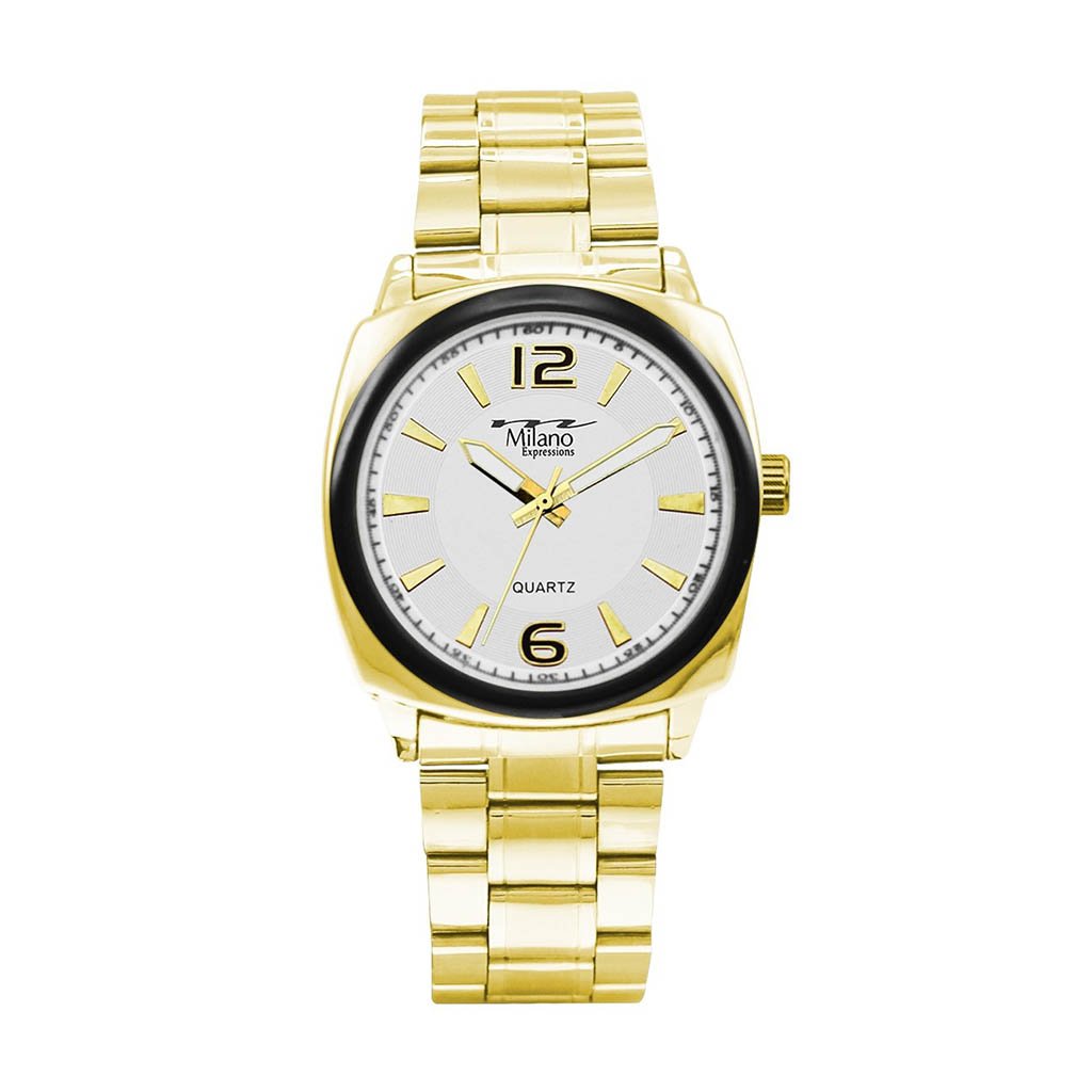 M Milano Expressions Gold Metal Band Watch with Gold Case/White Dial